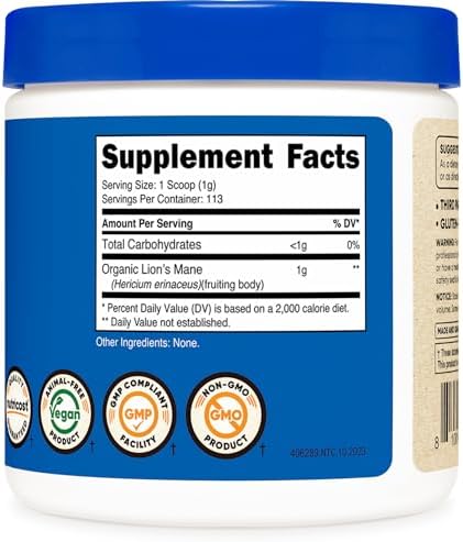 About this item Lion’s Mane Mushroom Powder – USDA Certified Organic, Gluten-Free, Vegan, Non-GMO 100 Grams of Pure, Organic, Lion’s Mane Powder Easy to Store Bottle, Scoop Included 3rd Party Tested For Purity and Safety Made in a GMP Compliant, FDA Registered Facility