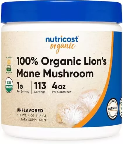 Nutricost Organic Lion’s Mane Mushroom Powder 100 Grams – Certified USDA Organic