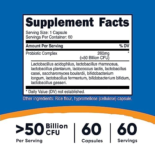 Nutricost Probiotic Complex – 50 Billion CFU, 60 Capsules – Probiotic for Men and Women – Vegetarian Capsules, Non-GMO, Gluten