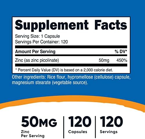 Nutricost Zinc Picolinate 50mg, 120 Vegetarian Capsules – Gluten Free and Non-GMO