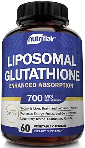 - Potent Clinically-studied Glutathione Pills – NutriFlair Extra strength L Glutathione supplement features 700mg of Setria – a patented ingredient that has been clinically studied to Support Liver, Brain, Immune, and overall Health. These herbal dry liposomal capsules are rich in nutrients and antioxidants that your body needs to stay in great shape