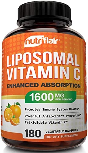 About this item High Absorption, Fat Soluble Antioxidant Supplement, Higher Bioavailability Immune System Support and Collagen Booster Brand: NutriFlair Liposomal Vitamin C Size: 1400mg,180 Capsules