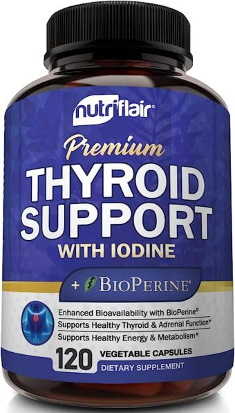 NutriFlair Thyroid Support Complex with Iodine + BioPerine – 120 Vegetarian Capsules Energy & Focus Formula, Boosts Brain Function & Metabolism