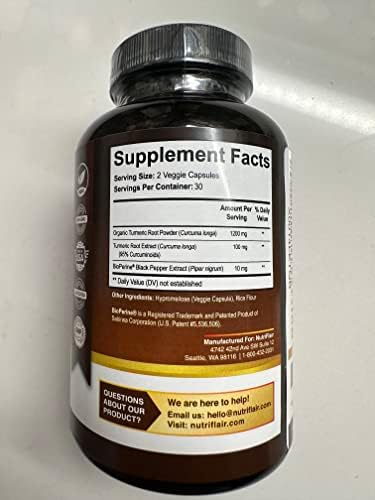 • Key Ingredients: Turmeric Root Powder, Curcuminoids (95%), BioPerine (Black Pepper Extract)
