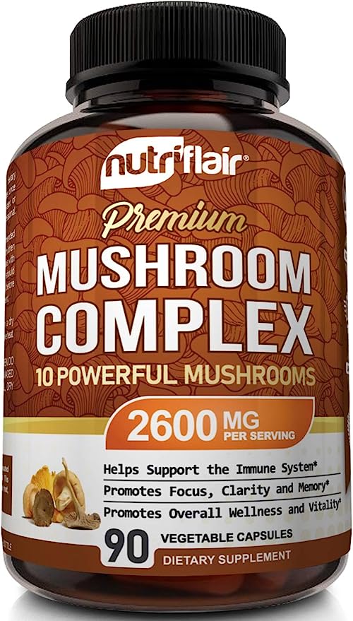 NutriFlair 10 Organic Mushroom Supplement – 2600mg, 90 Capsules