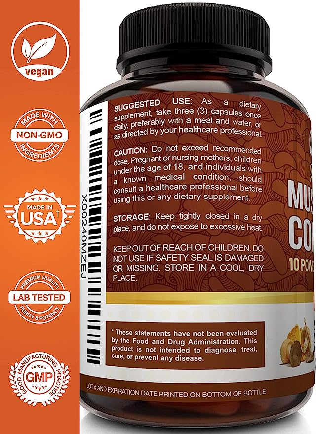 ✔ 10 Powerful Mushrooms – Includes Lion’s Mane, Reishi, Cordyceps, and more for full-body wellness.