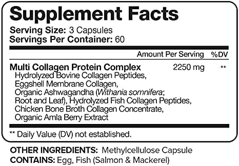 PREMIUM ALL-IN-ONE BONE BROTH + COLLAGEN PEPTIDES: Get your Collagen needs covered with this all-in-one, super premium collagen and bone broth supplement with a potent, high-quality blend of grass-fed beef, chicken, wild caught fish, and eggshell collagens, providing collagen Types I, II, III, V and X. Unflavored and easy to mix in smoothies, soups, coffees or baked goods. Collagen helps to rejuvenate your tendons, joints, ligaments and muscles while keeping a healthy digestion system and glo TOP COLLAGEN PEPTIDES – This is an all-in-one premium collagen supplement with our own unique proprietary blend that uses only the most potent and highest quality of Collagen Peptides from Grass-Fed Beef, Collagen from Chicken Bone Broth, Collagen Peptides from Wild Fish, and Eggshell Membrane. Proteins help form connective tissue in your skin making it tighter and helping decrease fine lines, wrinkles, stretch marks and can also help minimize cellulite. REJUVENATE HAIR SKIN AND NAILS + JOINT SUPPORT – Get the #1 collagen capsules for women for hair growth & hair skin and nails vitamins with pure collagen protein powder. Collagen type 2 with types 1,3,5, & 10 contain integral proteins and amino acids to restore lost collagen to your skin, hair, joints, and muscles to help improve skin elasticity, skin hydration, as well as strengthen and thicken hair follicles. TASTELESS AND EASY-TO-SWALLOW DOSE – With our whooping twice daily 1450mg dose, You’ll get the help you need without having to swallow a huge pill. Our size 00 capsules are vegan/vegetarian friendly and soft easy-to-swallow capsules. You will be able to reap all the benefits stress free and in the form of tiny capsules. Our supplement is Made in the USA in a FDA registered and inspected facility that is (GMP) compliant. It’s also GMO free and Third Party Tested. Health is #1.
