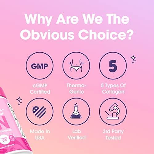 About this item Our formula is fortified with powerful weight loss ingredients like Innobio, Bioperine & more for rapid results. Skip your morning coffee and enjoy our 120mg of caffeine with added mood enhancers to help you power through the day Infused with 5 types of Collagen and Biotin, our product will deliver the glow beauty lovers dream about. Alleviate nagging joint pain, inflammation and improve overall bone health and flexibility. Due to recent demand, the color of our capsules will vary between pink and white color.