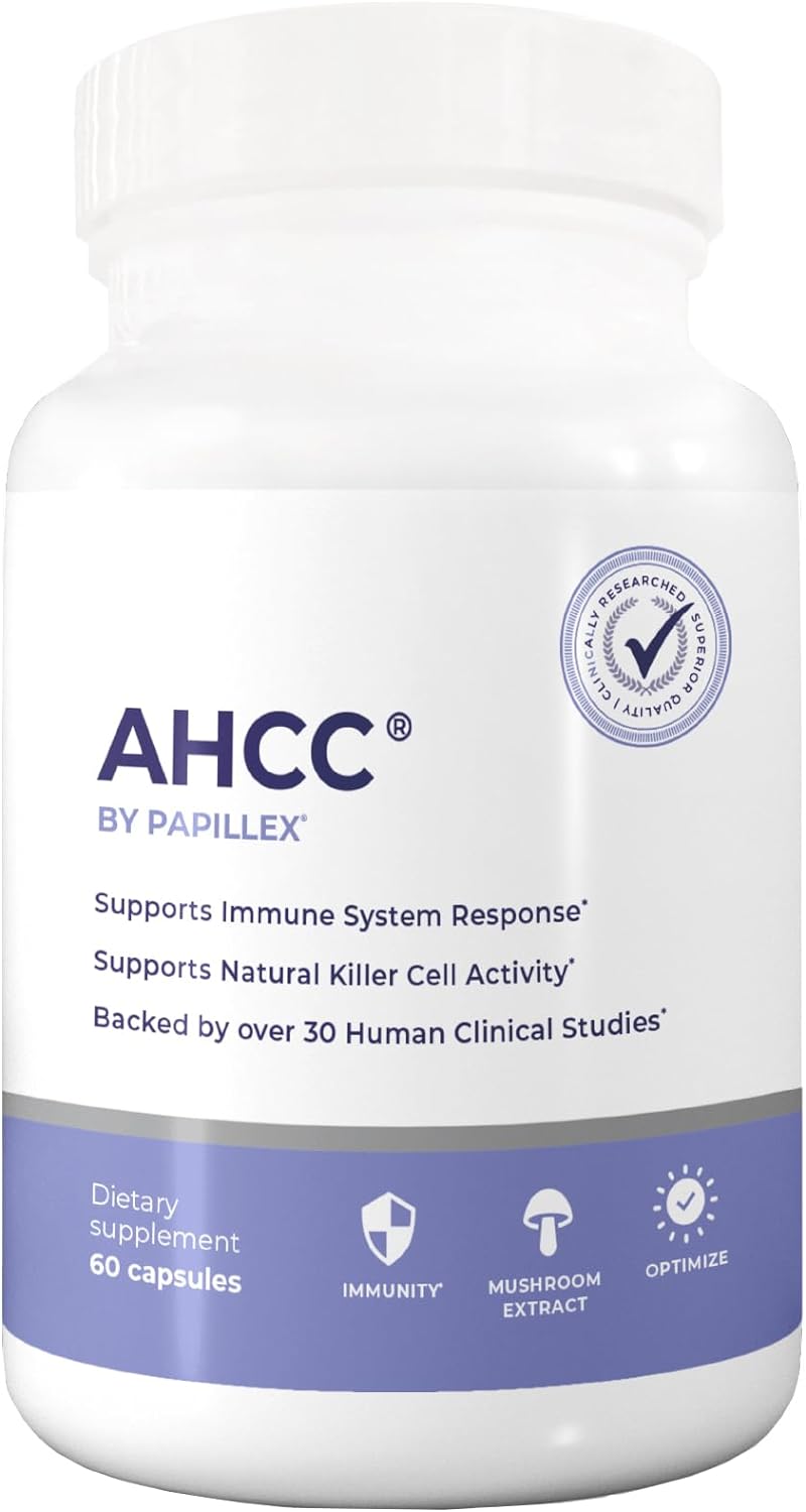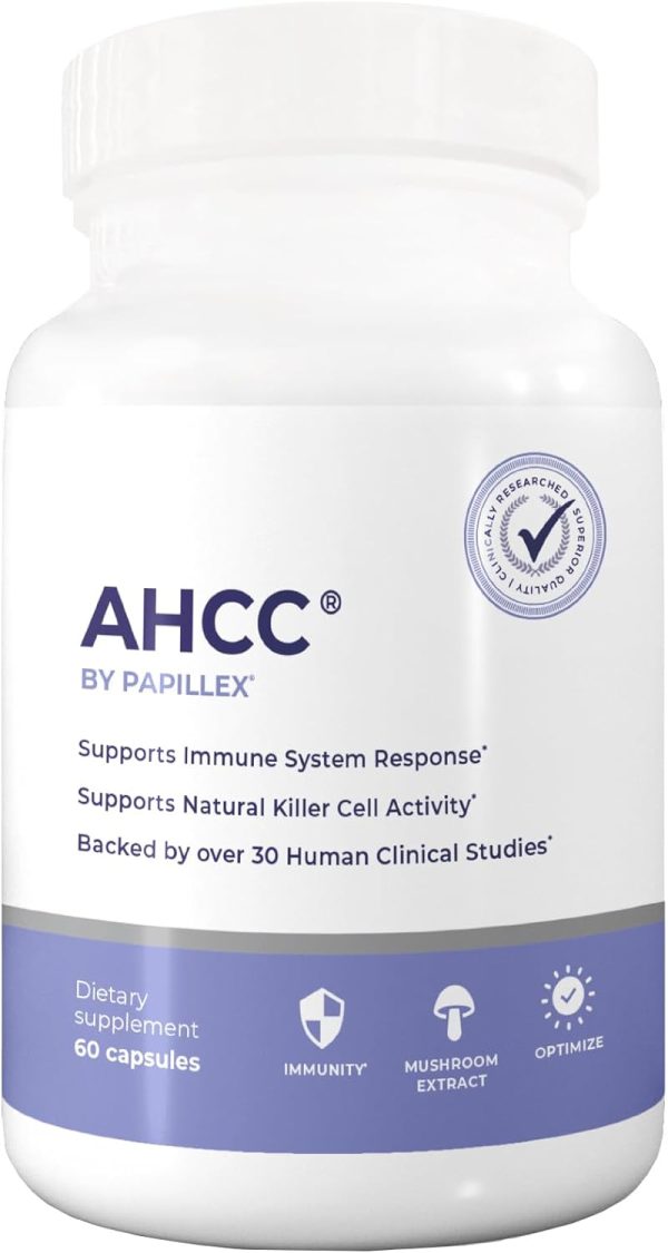 Papillex AHCC Supplement – Maximum Strength – Natural Immune Support Extract – Maintains Natural Killer Cell Activity – 20+ Human Research Studies – 60 Veggie Capsules (1 Pack)