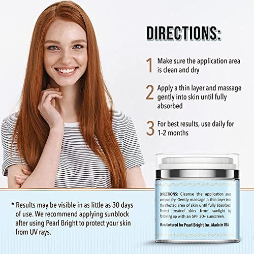 About this item Instant Results – We know it’s hard to achieve as most synthetic solutions irritate and dry skin out. Be sure to forget those drawbacks as with our PearlBright Cream you are ensured to achieve the skin beauty you have been wishing for. Protects Your Skin – In order to get rid of discomfort, we use no preservatives for parabens in production. Instead, let gentle and natural components help you get rid of spots, excessive pigmentation, and even out skin. Filled with Arbutin, Mulberry, Licorice, and Vitamins A & E for protection, see the results. Universal and Effective – Suitable for intimate areas and anywhere else on the body, our formula is to tackle any unwanted and annoying skin irregularities. fast-acting, you won’t wait for transformation to begin. However, at PearlBright we also know that fast results can yield more unwanted conditions. To avoid that, natural and nourishing components are ensured to calm and soothe your skin so you won’t have to bother about anything else. Made in USA – To provide you with only the best results, we use only the best components. Sourced from trustworthy US suppliers, all ingredients are tested and produced according to the US Law. Production take place іn the Unіted States as well, requiring us to follow only the best and safe practices and methods! Here for You – We value your satisfaction and opinion more than anything at PearlBright. We work hard to ensure you get only the best and all your problems and desires are either vanished or already fulfilled. If you are unsatisfied with our product or have anything you wish to let us know about – don’t hesitate and contact us.