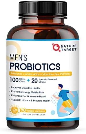 Probiotics for Men Digestive Health with Digestive Enzymes & Prebiotics, 100 Billion CFUs, Men's Probiotics with Saw Palmetto & Cranberry for Prostate & Urinary Tract Health, 90 Veggie Capsules Health & Household