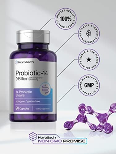 About this item ULTIMATE PROBIOTIC: Features 14 Probiotic Strains and 9 billion active organisms per serving* CONVENIENT FORM: Quick release capsules make it easy to add to any supplement program! EXPERTLY CRAFTED: Our professional formula is backed by our commitment to purity and potency HORBAACH MANUFACTURERS: Laboratory Tested, Trusted Ingredients, Superior Quality, 100% Guaranteed! NATURALLY FREE OF: Gluten, Wheat, Soy, Artificial Color, Flavor, Sweetener, Preservatives, & Non-GMO