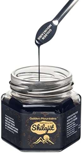 About this item “Golden Mountains” Shilajit resin is manufactured in Altai, Siberia using proprietary technology and high quality standards to ensure the best possible purification and highest safety standards “Golden Mountains” Shilajit resin is independent 3rd party US Lab tested. In addition to that, Quality & Safety manufacturer lab certificate – report inside each package provided. “Golden Mountains” Shilajit resin is packed in environmentally friendly glass. Measuring spoon included in each box “Golden Mountains” Shilajit is concentrated, not diluted (not a liquid substance), relatively hard concentrated resin – premium source of valuable organic herbal / plant derived elements. “Golden Mountains” Shilajit resin sourced from environmentally responsible harvesting – Thank you for your support of Altaisky Biosphere Natural Preserve, one of the sites of Golden Mountains of Altai, where this Shilajit is coming from!