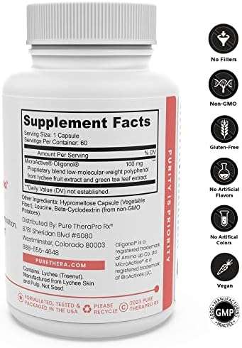 Pure TheraPro Rx MicroActive Oligonol | Clinically Proven Polyphenol Supplement to Support Body Composition & Healthy Skin | 2x More bioAvailable | 2 Month Supply | Non-GMO & Vegan (60 Vegan Capsules)