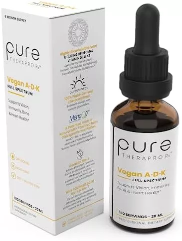 Pure TheraPro Rx Vegan A-D-K Drops – 6 Month Supply – Vitamin A (Palmitate & Betacarotene), Liposomal Vitamin D3 (Pureshine), Liposomal Vitamin K2 (MK-4 & MK-7) Supports Immunity & Bone Health – 20 mL