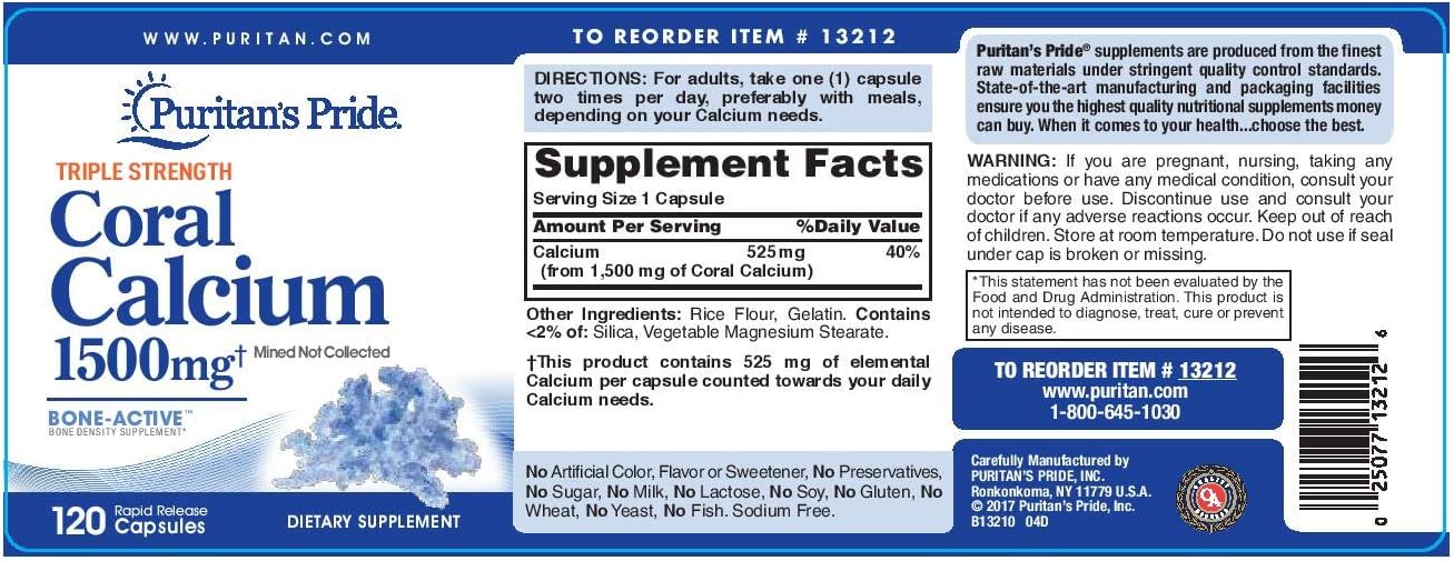 Puritan’s Pride Triple Strength Coral Calcium 1500 mg-120 Capsules