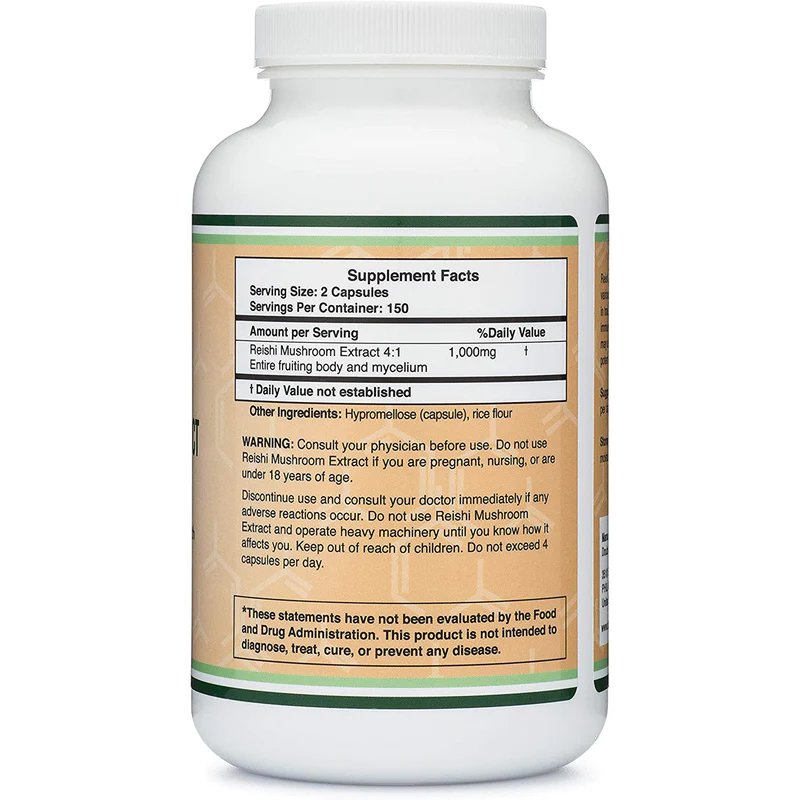 Reishi Mushroom Capsules (4:1 Ganoderma Extract, 1,000mg