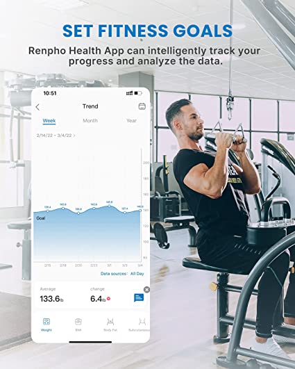 📊 13 Body Metrics in 1 Device – Monitor BMI, weight, body fat, muscle mass, metabolic age, and more via the RENPHO Health App.