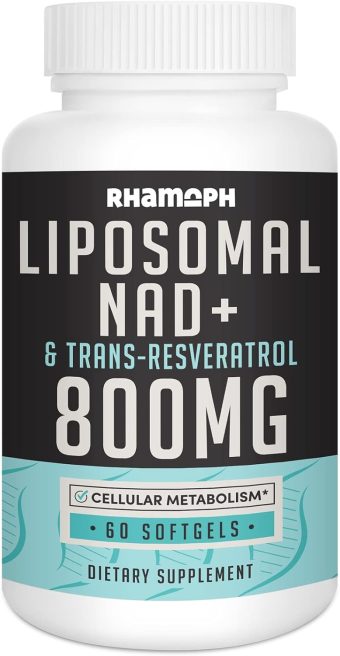 Rhamoph Liposomal NAD+ 800 mg with Trans-Resveratrol 300 mg, Max Absorption, Actual NAD+ Boosting Supplement for Healthy Aging, Cellular Energy, DNA Repair, Longevity – 60 Softgels