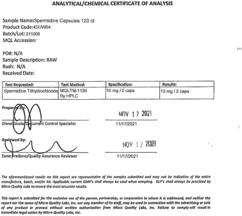 Spermidine Supplement (10mg of 99% idine 3HCL – Third Party Tested) 120 Capsules