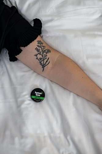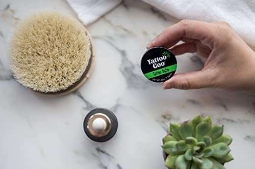 HEALING BALM – Made with the finest blend of humectants, essential oils and premium natural ingredients for moisturization, antimicrobial activity, anti-oxidation and stimulation of circulation. Designed to help the skin heal itself for vibrant new tats. ANTIOXIDANT SUPPORT – No preparation has more antioxidant activity than Tattoo Goo. We use quality pumice grade olive oil to help manage the skin healing process along with wheat germ oil, loaded with the antioxidant vitamin E, and rosemary extract. MOISTURIZER & BRIGHTENER – With 98% natural healing ingredients including triglycerides, olive oil, lavender, cocoa butter, and wax ester beeswax to help soothe inflammation, lubricate and moisturize. Petroleum and lanolin-free, never tested on animals. AVOID DRIED OUT TATS – Using aftercare products does not allow the tattoo to “dry out.” It makes a tattoo softer and promotes quicker healing by keeping the area lubricated and moist. Compact tin makes it super convenient to apply whenever needed. CERTIFIED DERMATOLOGIST TESTED – The product is pharmacist developed and clinical studies confirm Tattoo Goo after care products are not associated with skin irritation or allergic dermatitis (inflammation of the skin). Apply with confidence!