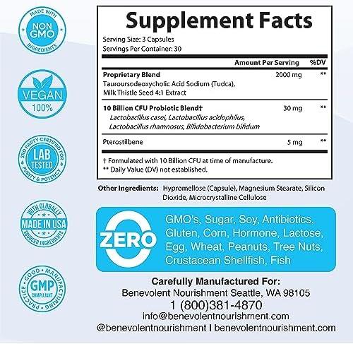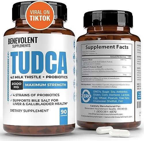 TUDCA Liver Support Supplement 2000mg – Bile Salts with Milk Thistle & Probiotics – 90 Capsules for Liver Detox & Digestive Health