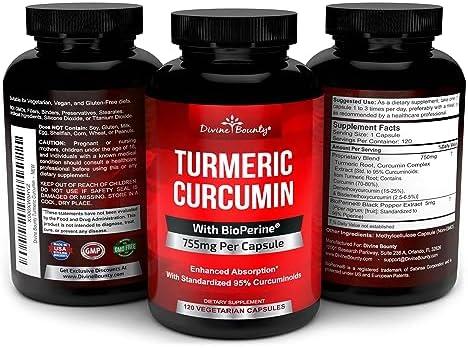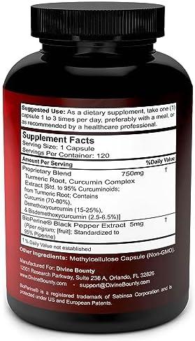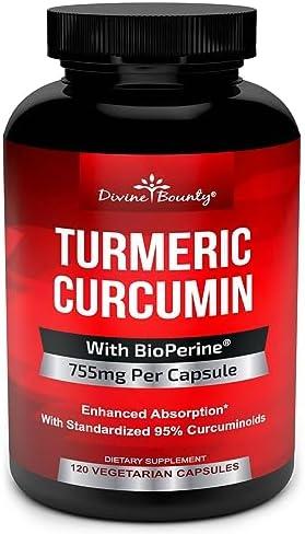 Turmeric Curcumin with BioPerine Black Pepper Extract – 750mg per Capsule, 120 Veg. Capsules – GMO Free Tumeric, Standardized to 95% Curcuminoids