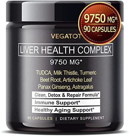 VEGATOT Liver Health Complex Formula 9,750MG **USA Made and Tested** High Potency with TUDCA, Milk Thistle, Beet Root, Artichoke Leaf, Panax Ginseng, Astragalus, Tumeric – Clean & Detox Formula